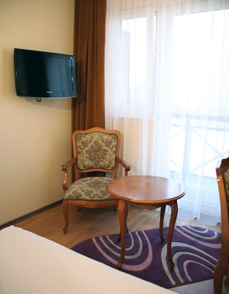 To funkcjonalna przestrzeń sprzyjająca regeneracji i spokojnemu wypoczynkowi w uzdrowiskowym otoczeniu.